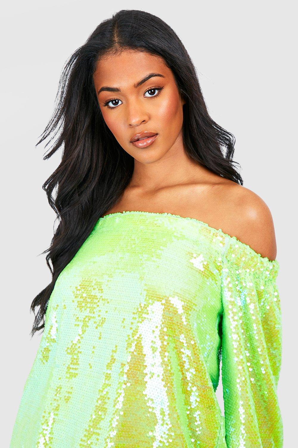 Product id: Women's off the discount shoulder sequin top