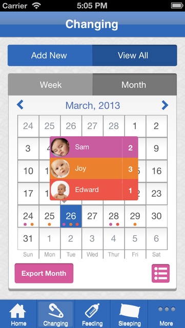 - app to keep track of feedings and diapers