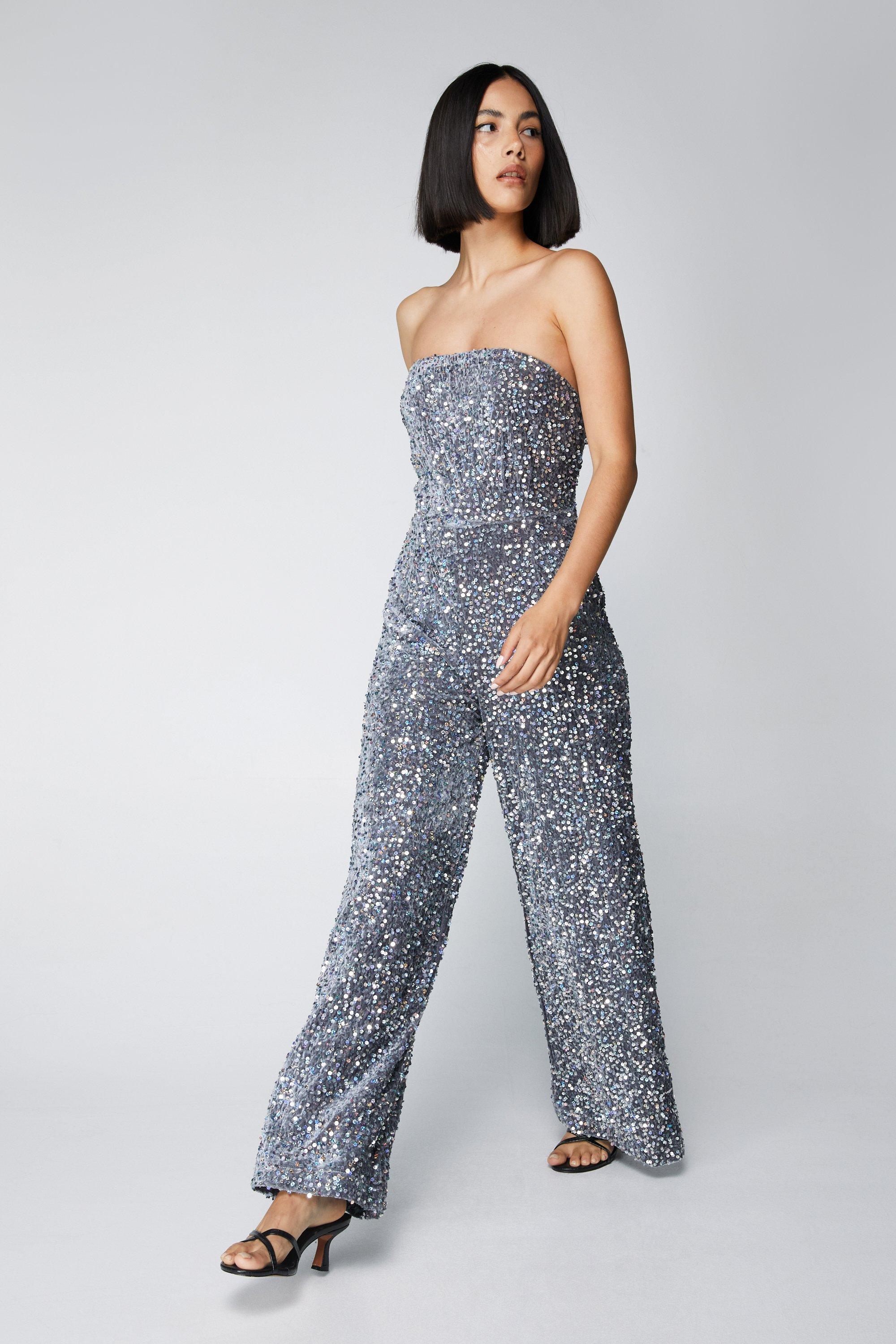 Product id: Strapless wide leg sparkle discount jumpsuit
