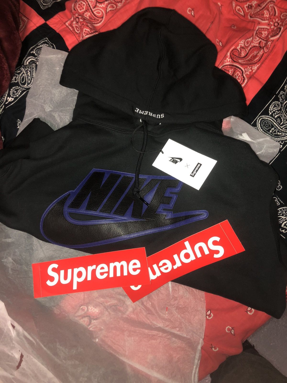 - supreme nike leather applique hoodie