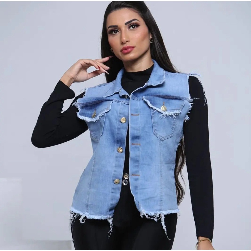 Product id: Jaqueta jeans feminina sem discount manga