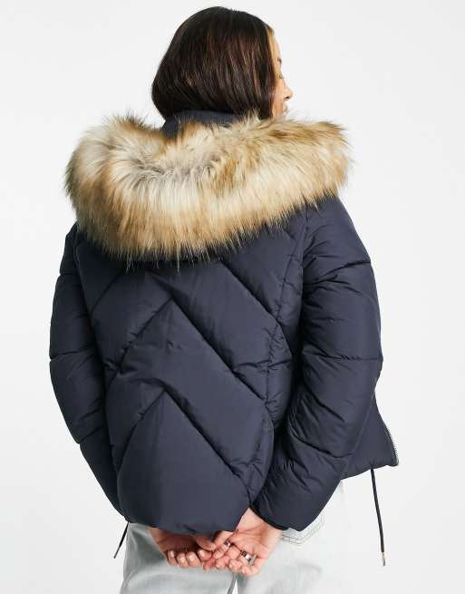 Product id: Navy padded coat fur discount hood