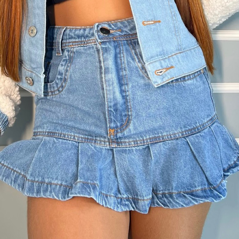 Product id: Saia jeans curta de discount babado