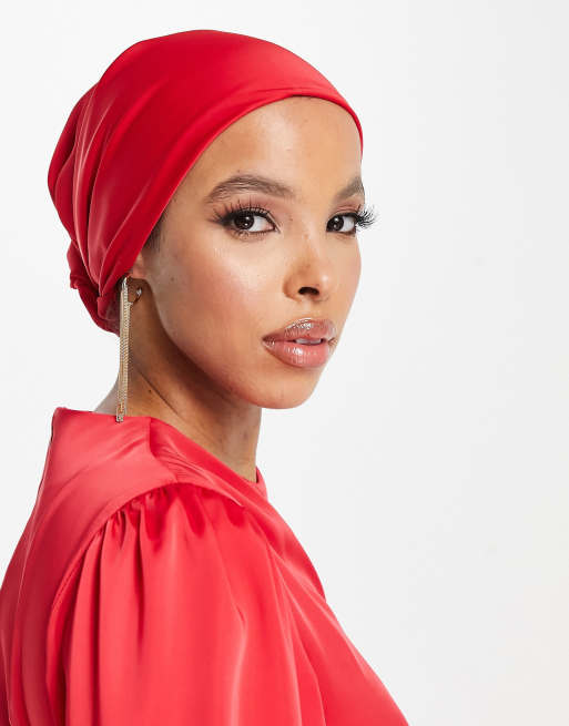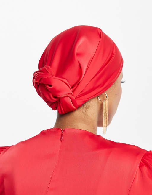 Product id: Red satin discount head scarf