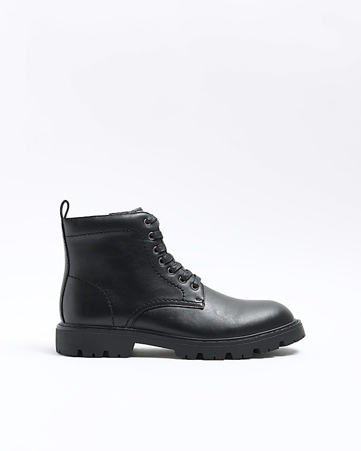 Product id: Black faux leather combat discount boots
